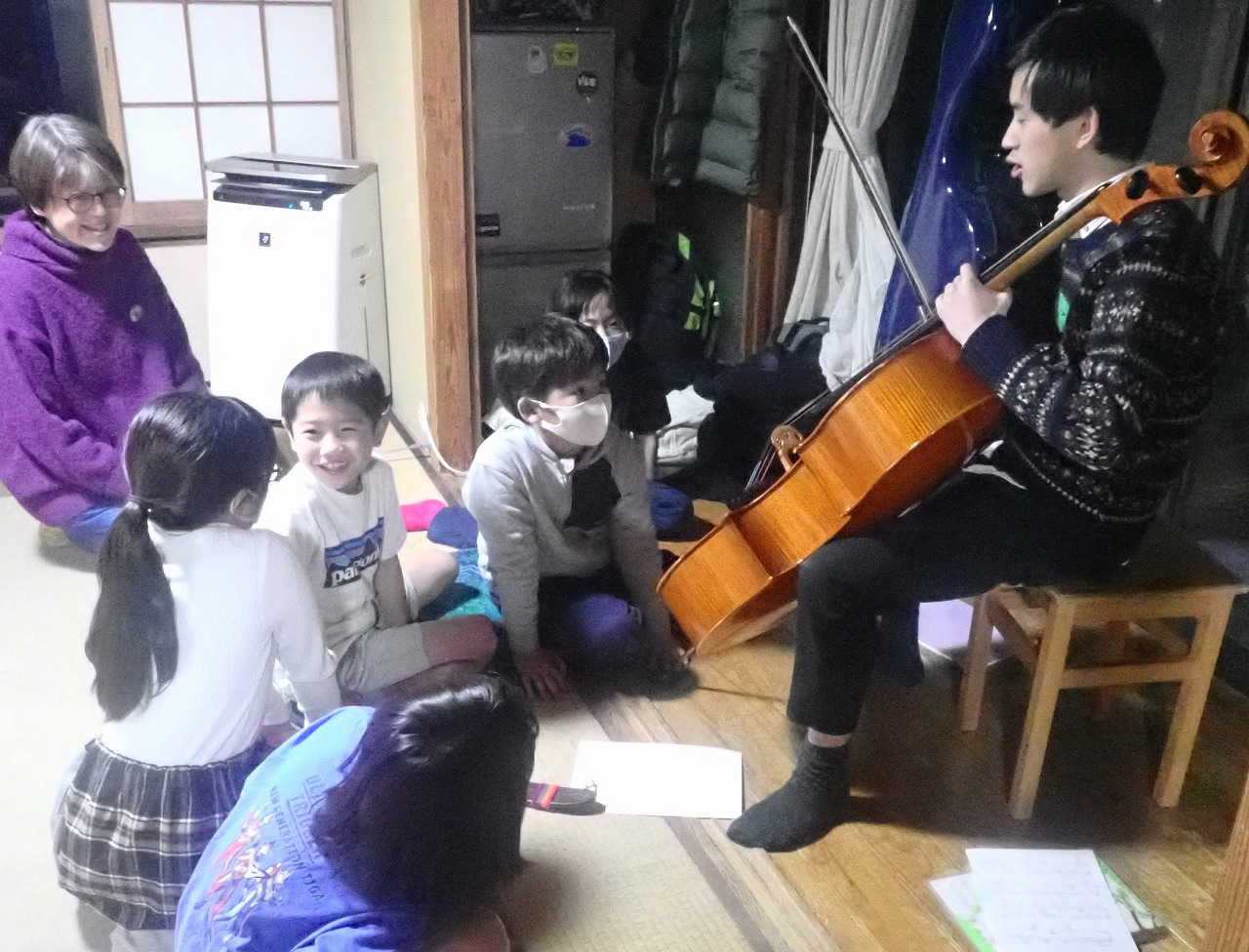 初めて聴くチェロの音色に、みんな耳も目も心も吸い寄せられている様子。笑