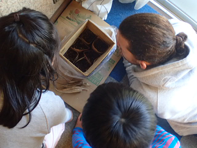 For our farming lesson, we tended to our okra seeds. Later in the class, we took a stroll around the neighborhood to see what is growing nearby and what colors we can find. The students were able to name many of the plants and how we use them, and we learned a few new plants as well!