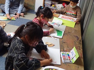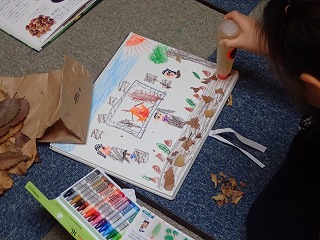 みんなは「がってん!」とばかり、いっせいに「自分国」を描き始めました。