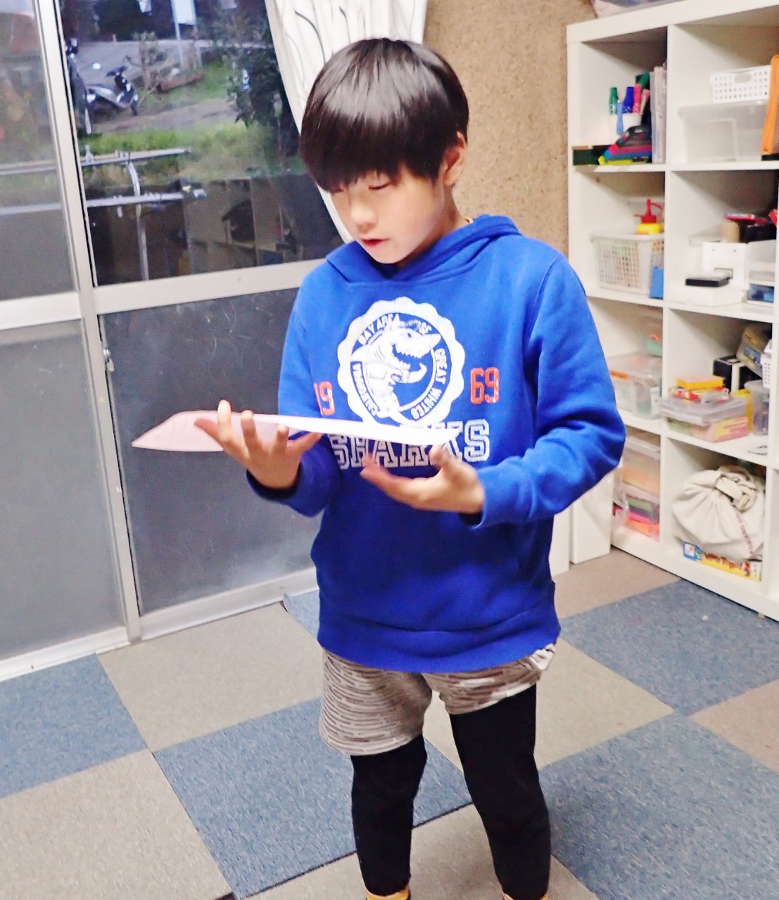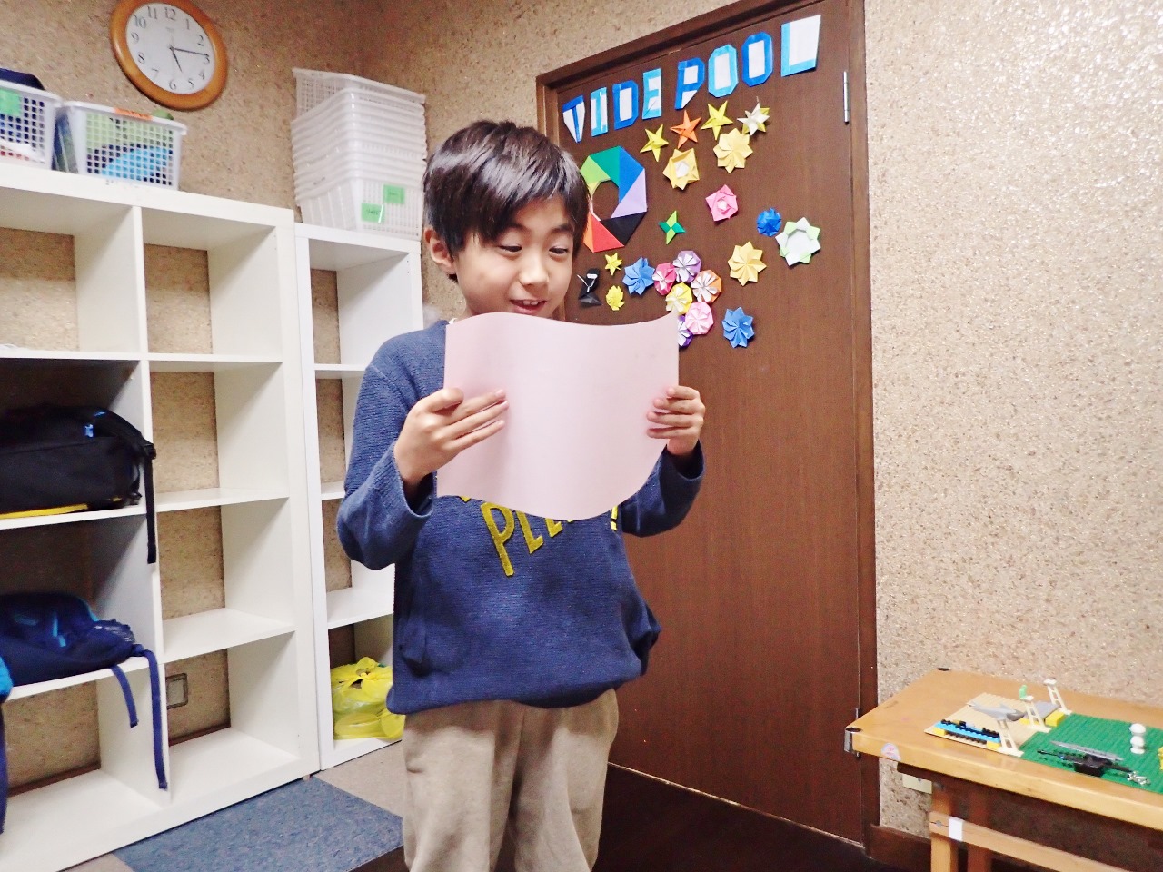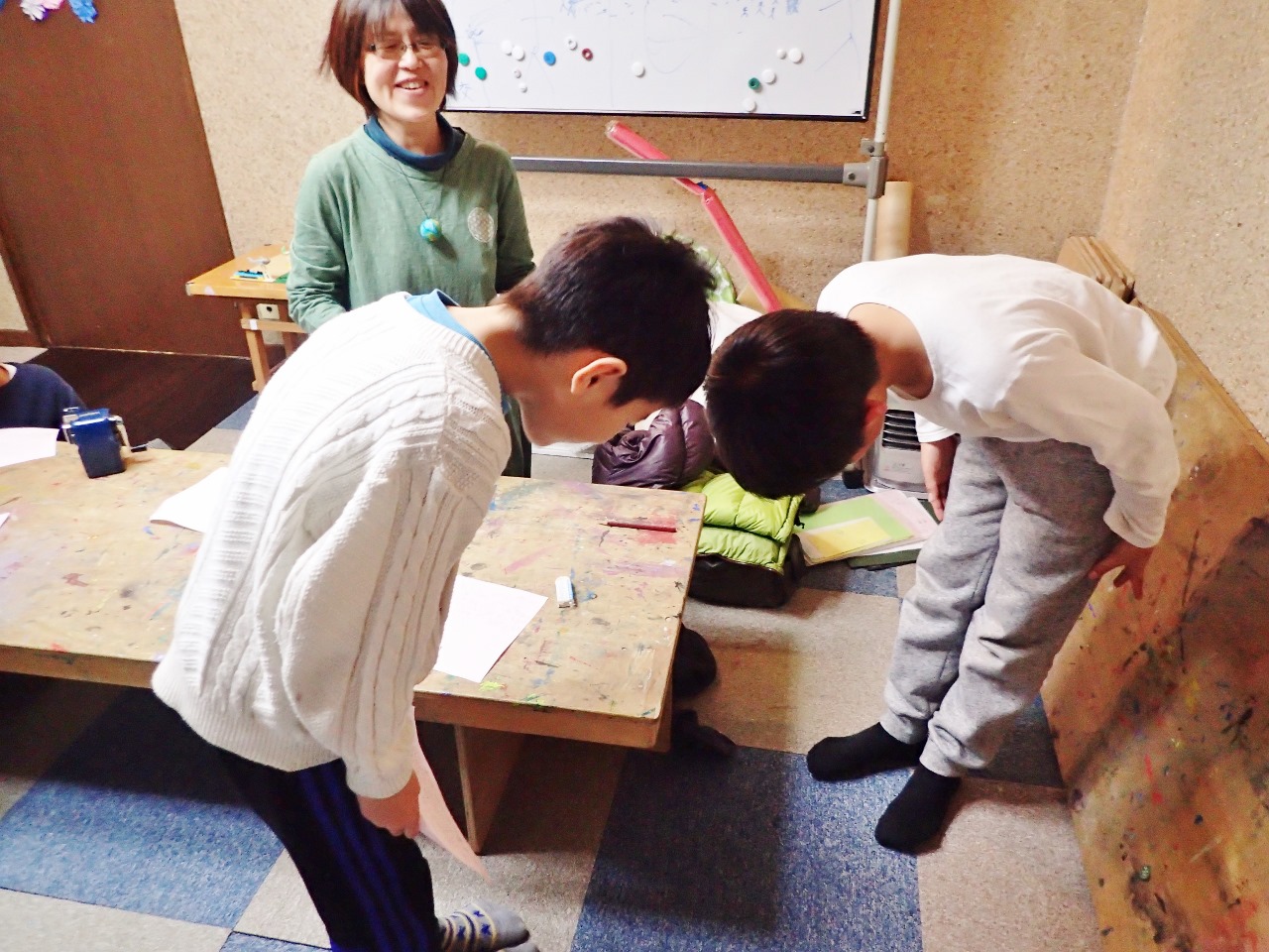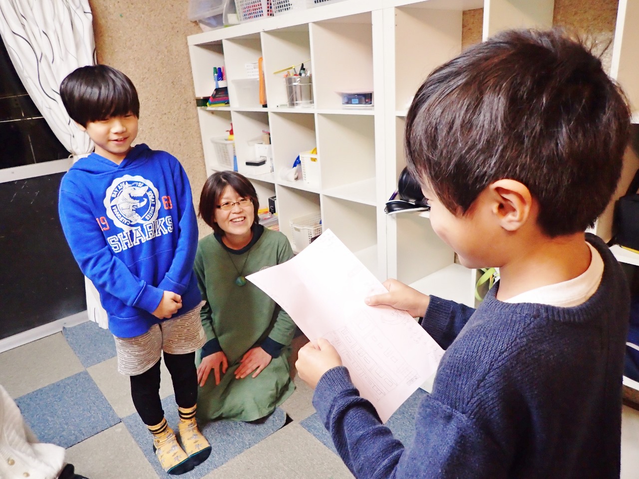 お迎えに来たお母さんにも見せたくて、思わず教室に引っ張り込んでパチリ。