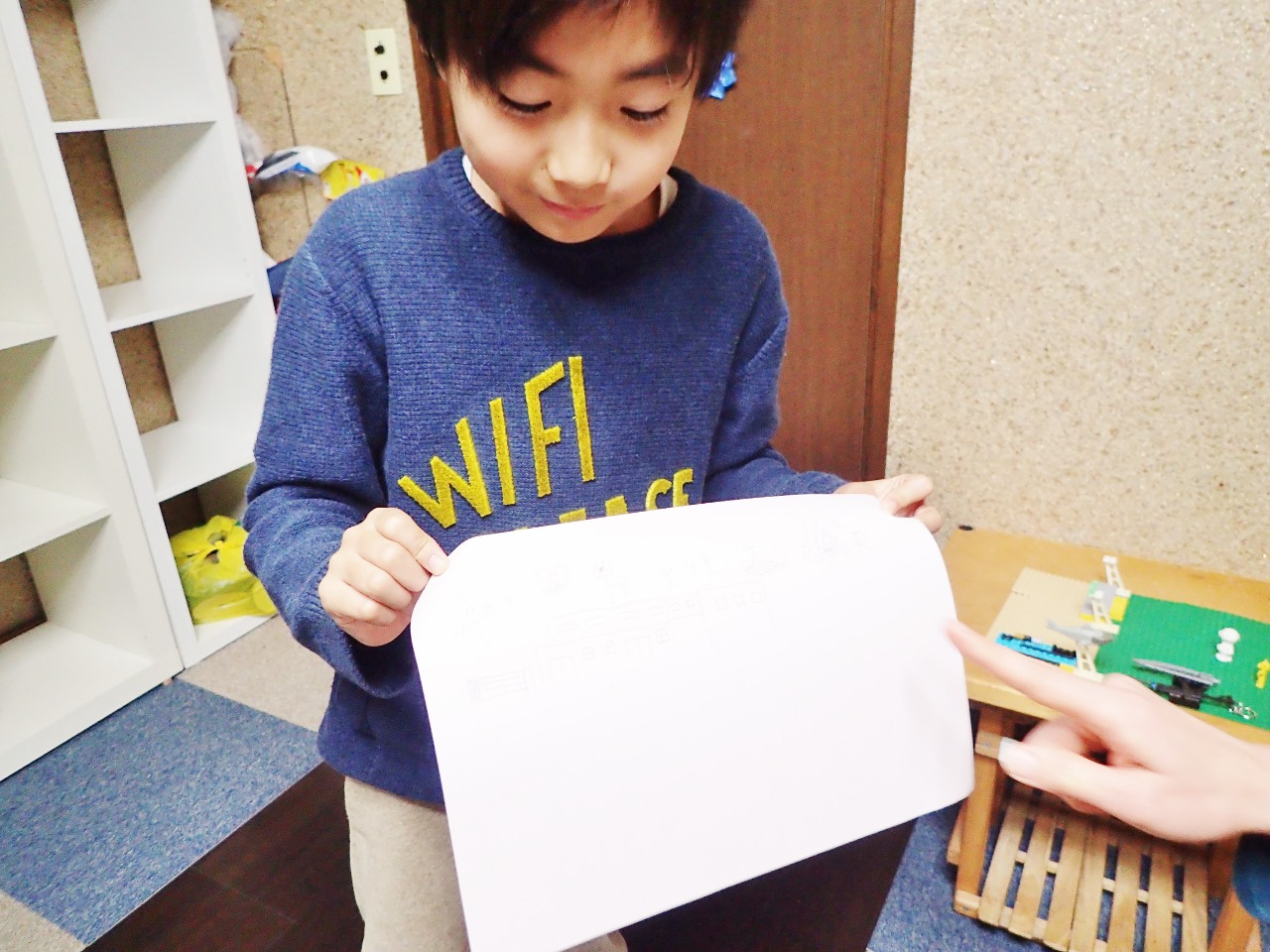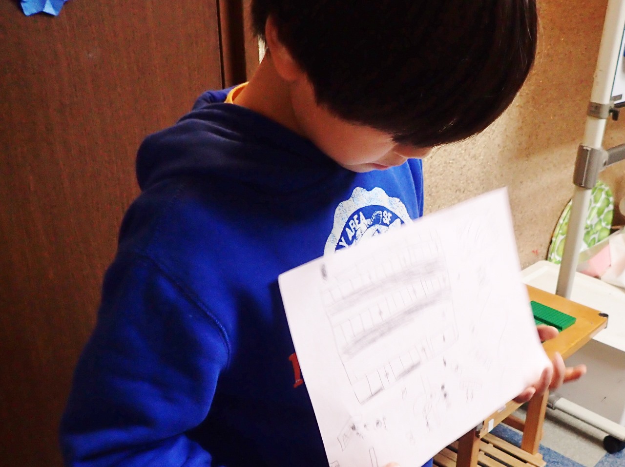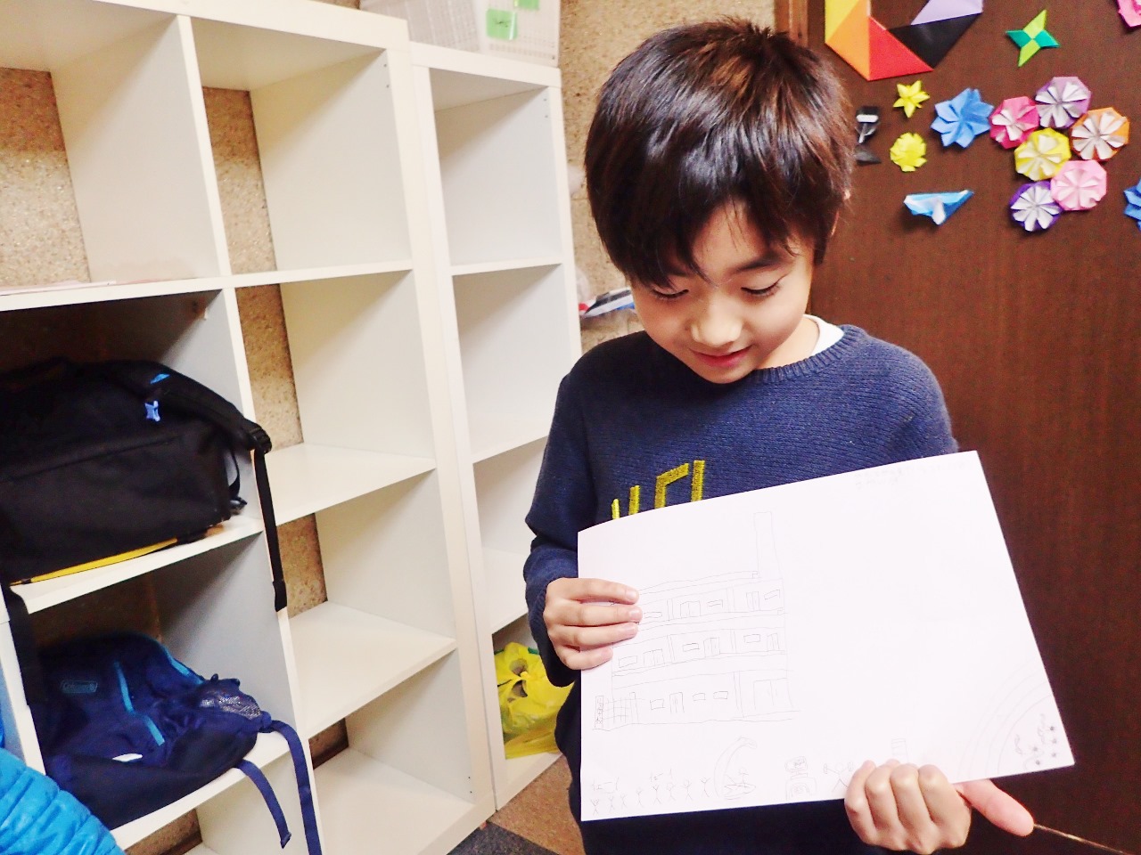 「さっきHくんが言ってたこと聞いてたから、学校とかを描いて、