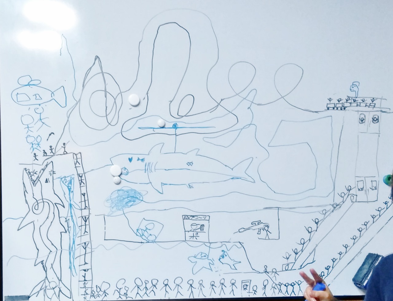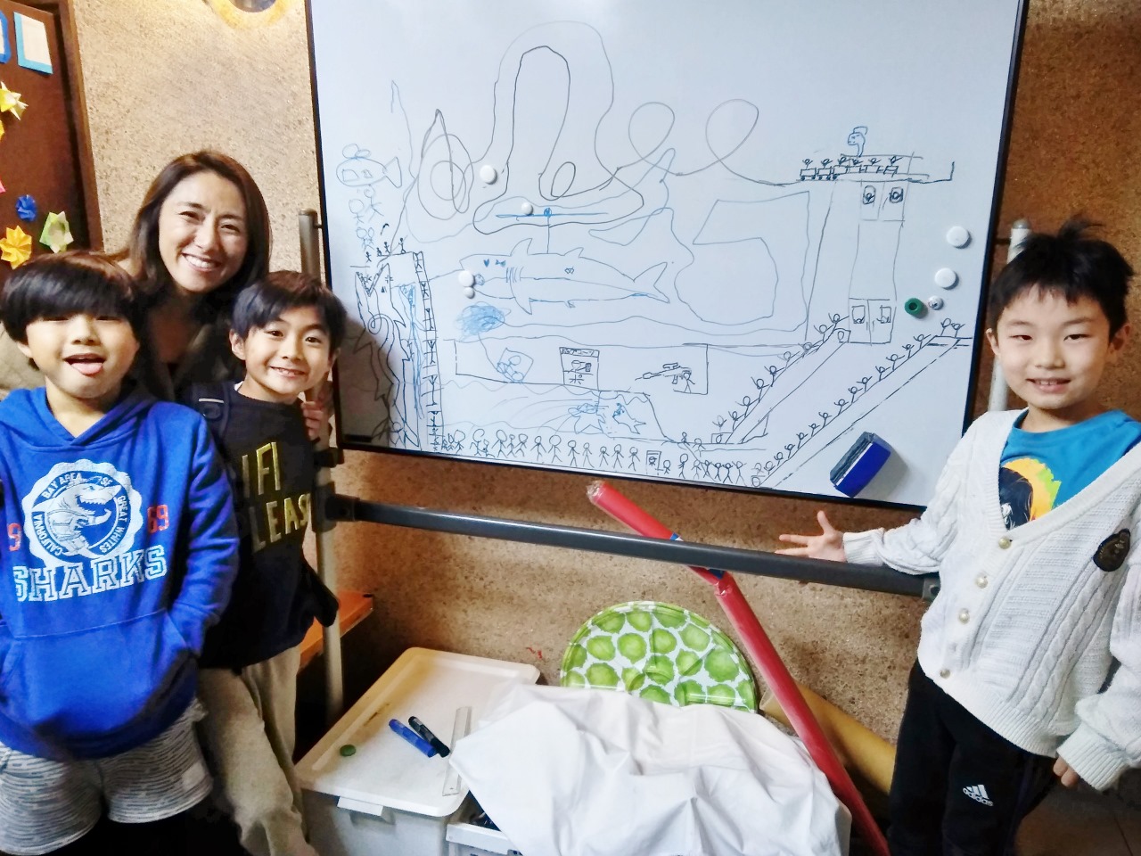 授業のあとHくんがホワイトボードいっぱいに描いた絵に