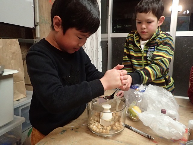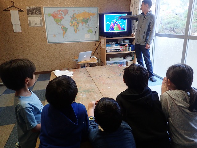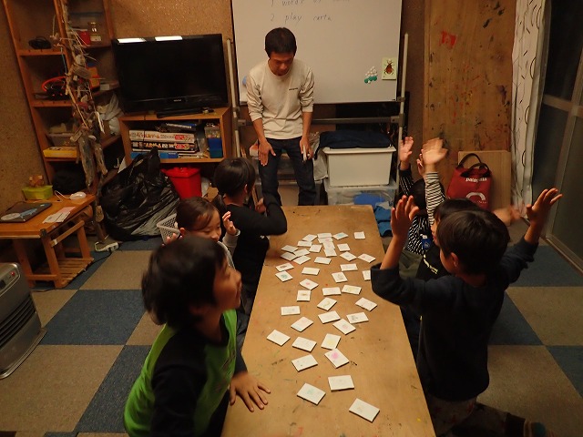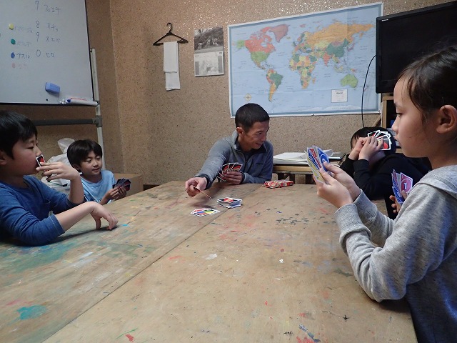 On this typical dry and cold winter day, we had a good time with the children making a Japanese traditional game "Carta".