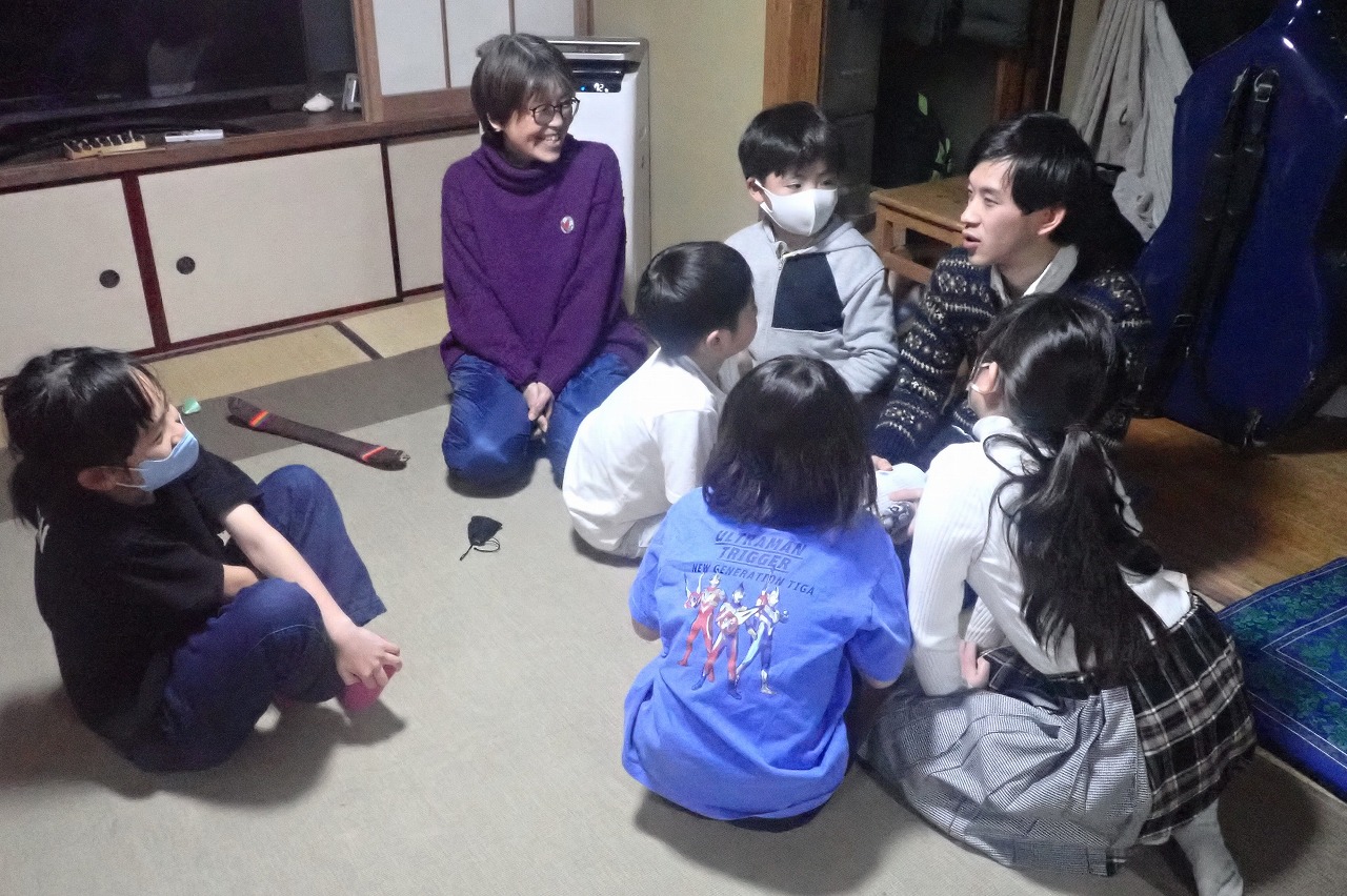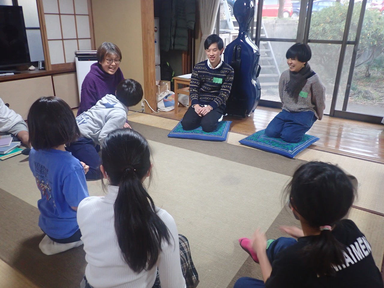 彼らの物怖じのなさ、素直さ、勘の良さは、その後の音楽のセッションにも出ていた。私には、めいめい好きな楽器を私のチェロに合わせて鳴らす彼らの姿は、将来の音楽家にも見えた。