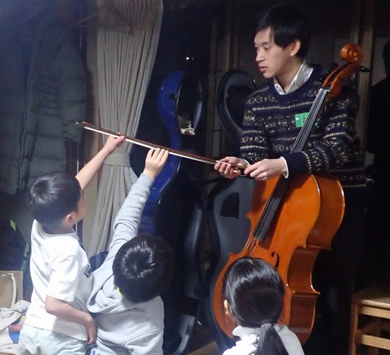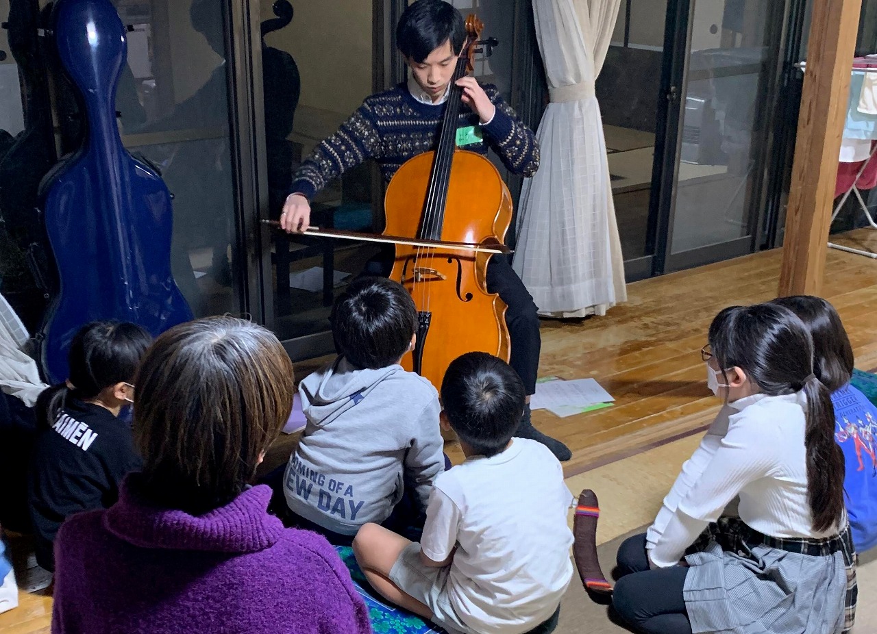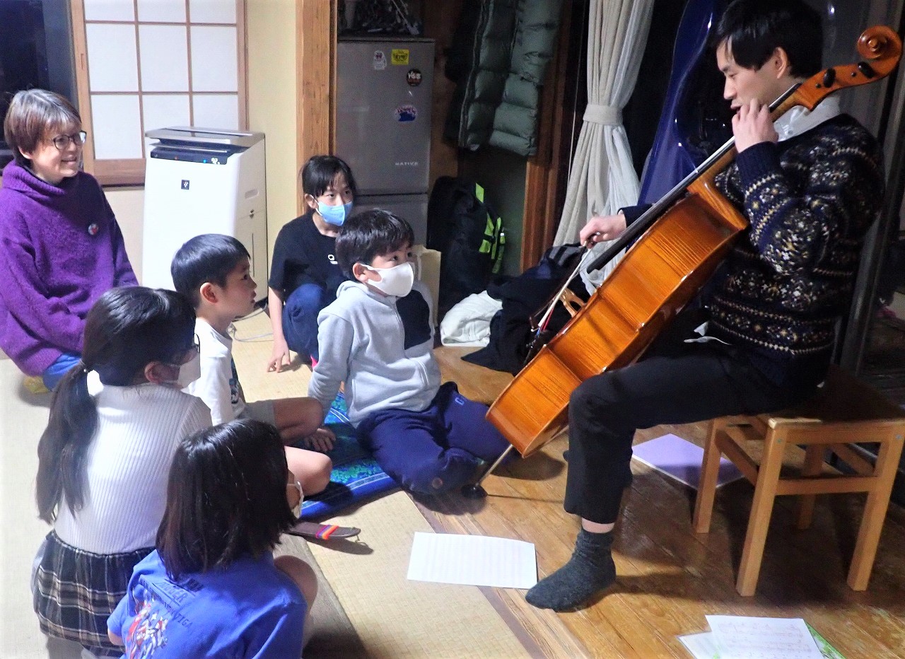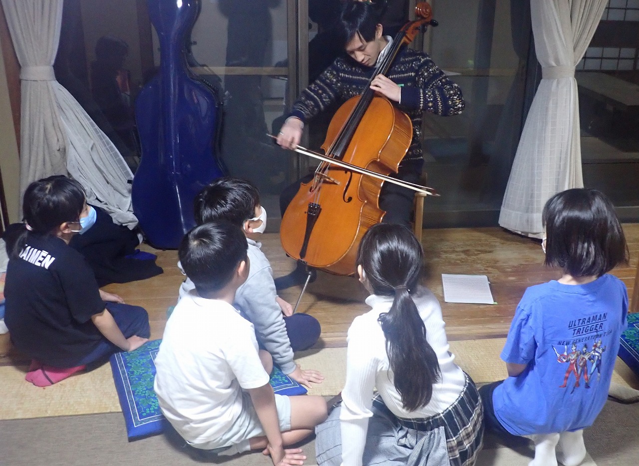 初めて聴くチェロの音色に、みんな耳も目も心も吸い寄せられている様子。笑