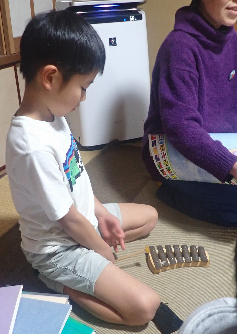 最後は庸くんと美江子さんが持ってきてくれた鳴り物楽器をお借りして、庸くんの演奏に合わせて、みんなで音楽を奏でました。