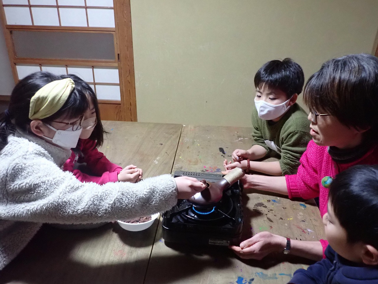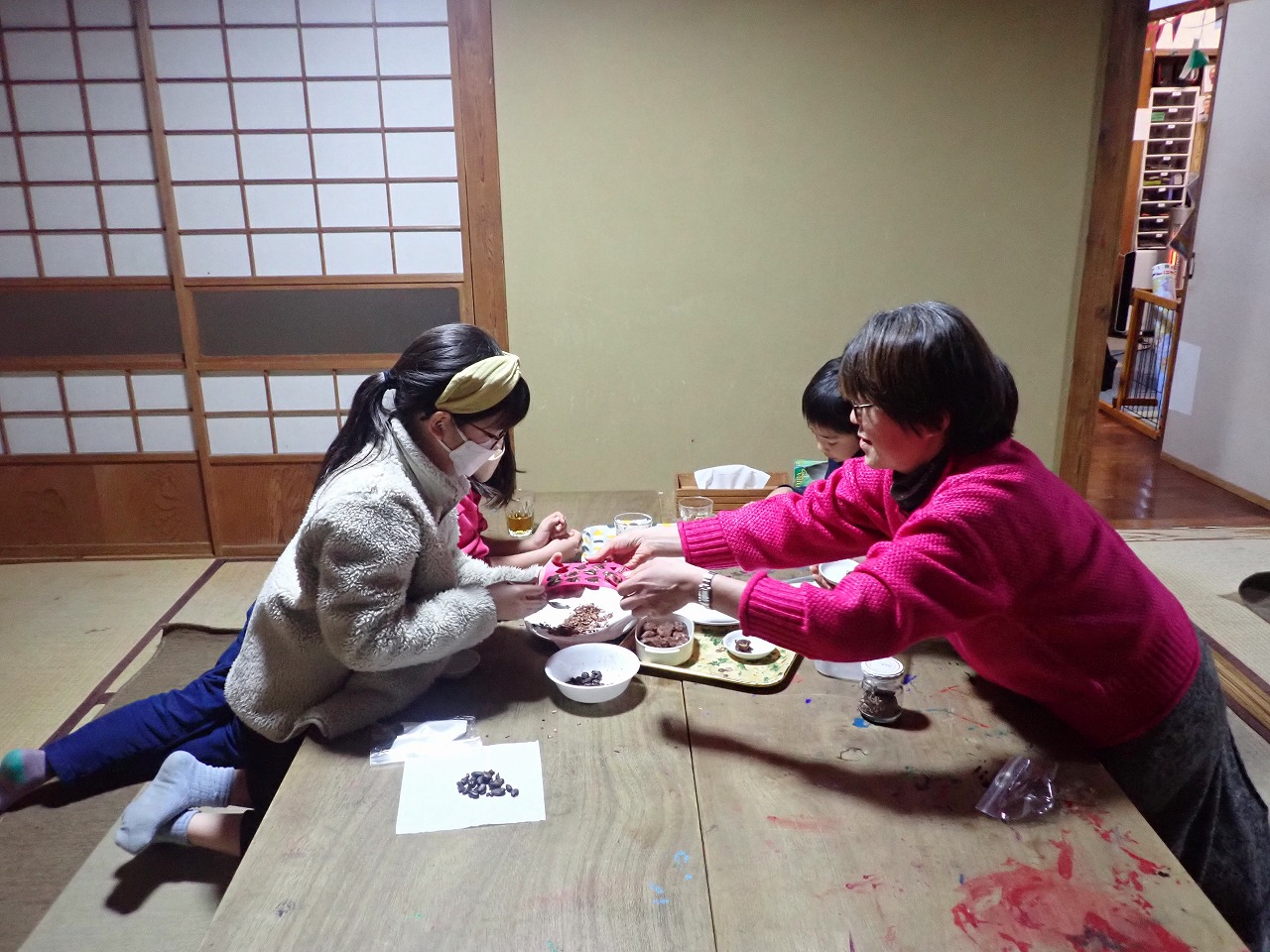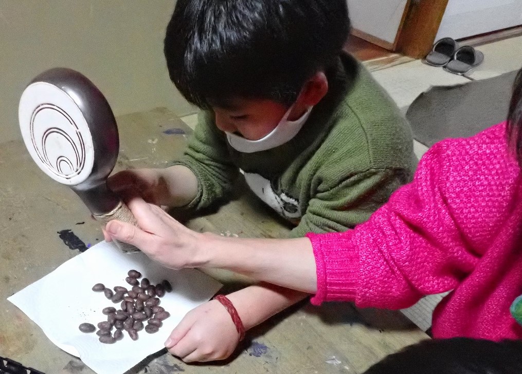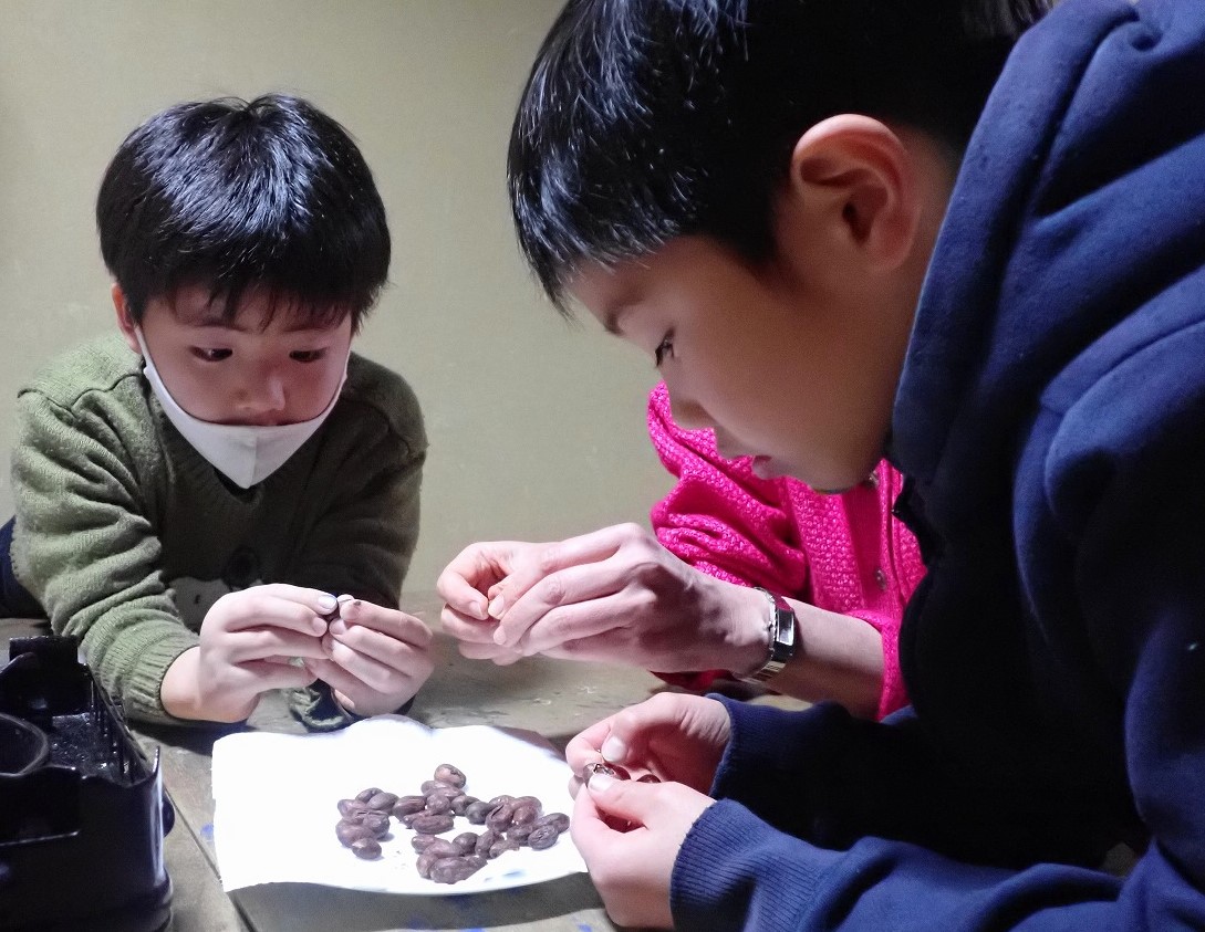部屋中、こんがり煎ったカカオ豆の香ばしい香りと笑顔で満たされ、しあわせなひとときでした。