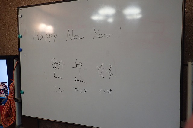 It was the first 「せかい」 class of this year, so we started with New Year's greeting!