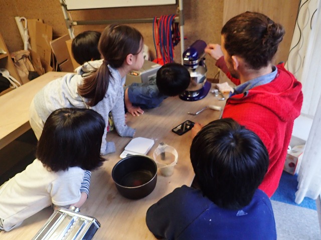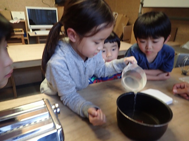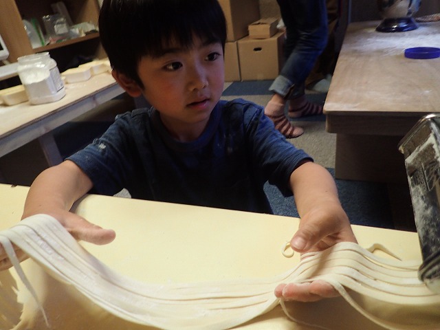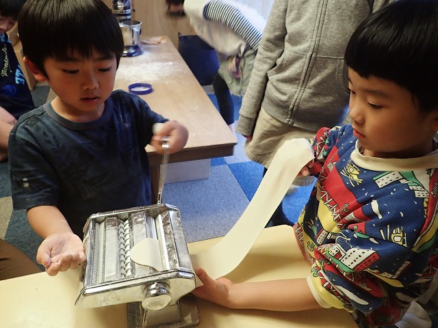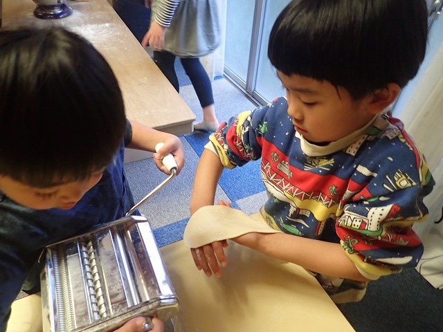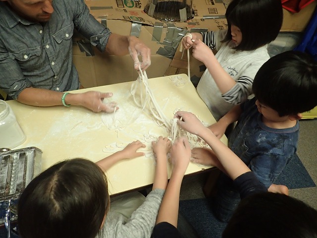 Once mixed into a nice consistency, the children broke into teams and made pasta.