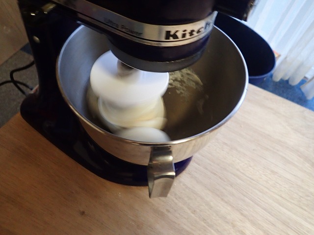 First we looked at the equipment and discussed how to use them safely. Then we got started mixing our pasta dough with a mixer. The pasta is made from semolina flour, regular wheat flour, and water.