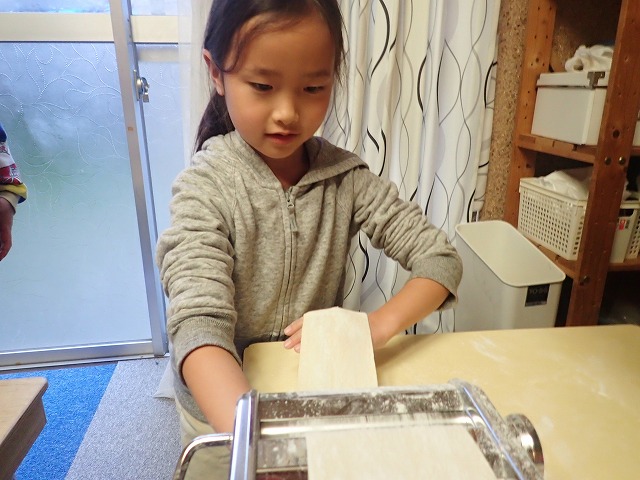 First we stretched the dough by putting it through the roller.