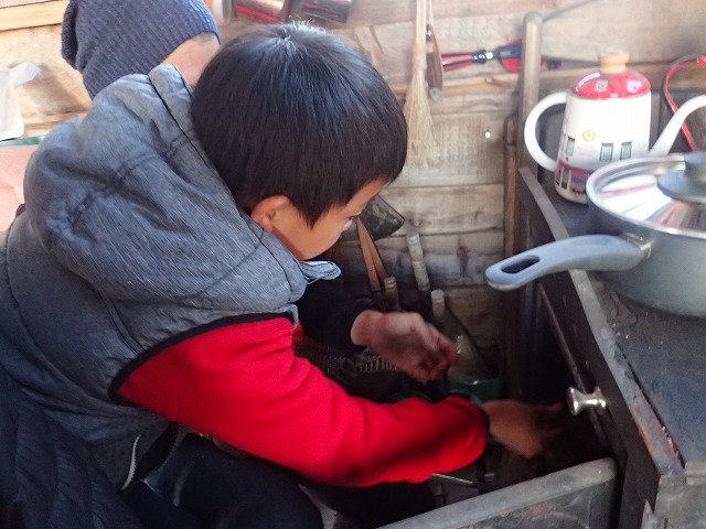 First, we cut pieces of wood to be used. Each child took turns using a saw to cut. Not easy!!!