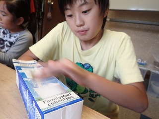 First we sanded milk cartons so that paint would adhere to the surface.