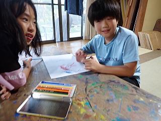 最初はみんなが知っている、見ている「海」を描いてもらいました!