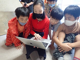 まず、今回は映画を一緒に観ることを子供たちに伝えると、「何の映画?」と興味津々にテレビの前へと集まってくれました。