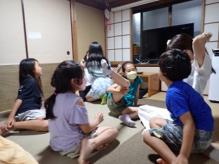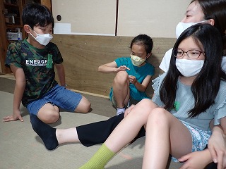 いつもこのクラスの始めと終わりには、みんなで“日本式のごあいさつ”をしていますが、今日はこれまでとちょっとスタイルを変えて、二人組で向かい合って行うことに。