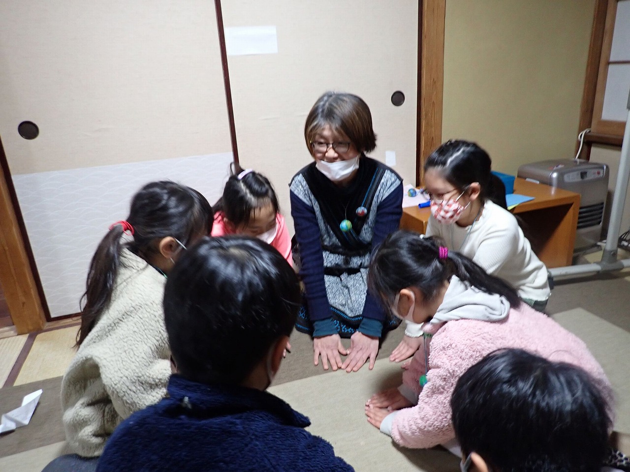 (私はアイコンタクトを大事にしたいので、③で頭を上げた後、床に手をついた状態でもう一度みんなで目を合わせニッコリしてから、両手を腿に戻すやり方にアレンジしています)